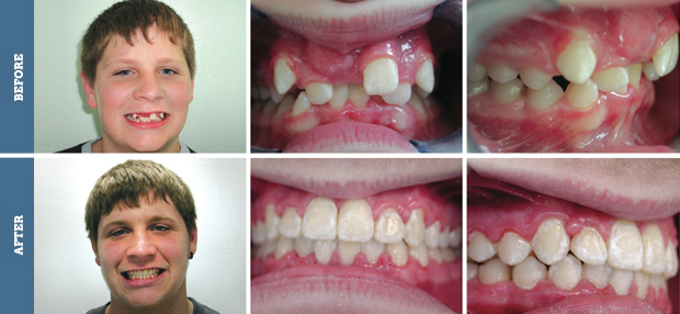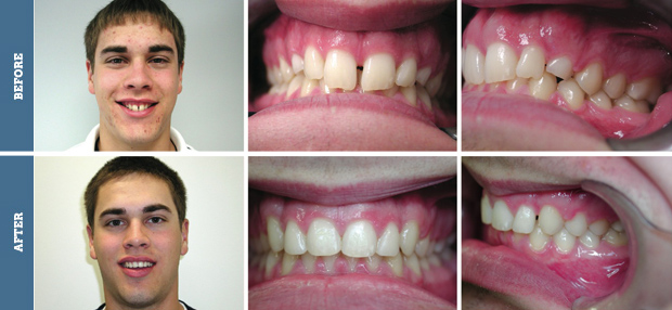 - Straightened upper and lower front teeth with positioning of upper center incisor tooth,